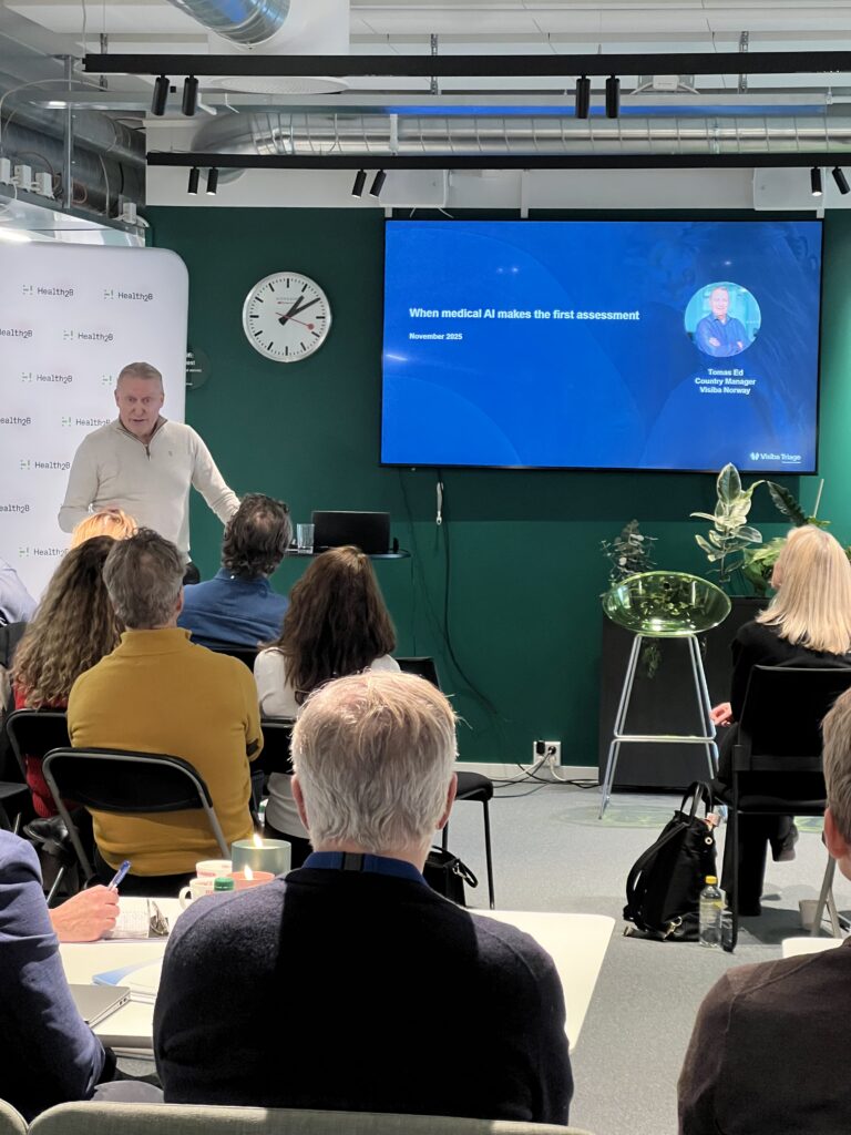 19. november inviterte Health2B og Visiba til Health2B Open: “Når medisinsk KI tar første vurdering – en ny vei for norsk helsetjeneste”. Formålet med seminaret var å dele innsikt i, behov for og krav til bruken av digital triage. Vi fikk også presentert erfaringer fra bruk av digital triage i prosjektene “Felles fastlegetjeneste/daglegevakt i Indre Namdal” og “SiO Helse – digital triage fastlege, legevakt”.